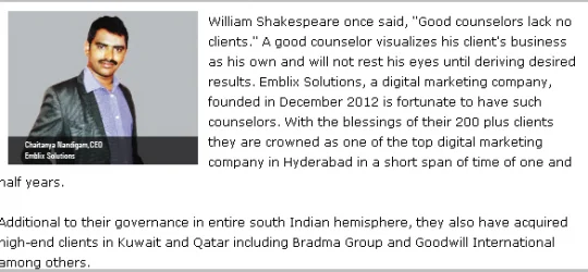 EMBLIX IS A LEADING Digital marketing company in HYDERABAD offering a wide range of services including Digital Marketing, SEO, Social media marketing, Google AdWords, Facebook ads, and website designing. We offer comprehensive and customized services for our clients.